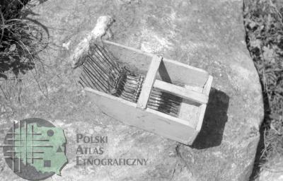 fotografia przedstawia czerpak zgrzebłowaty do zbierania borówek. Uwaga:- lokalizacja na mapie jest przybliżona -
