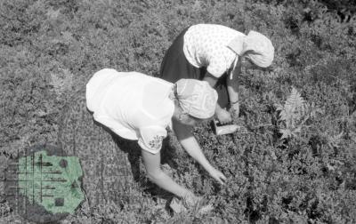 fotografia przedstawia kobiety z Ratułowa zbierające borówki. Uwaga:- lokalizacja na mapie jest przybliżona -