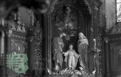 fotografia przedstawia ołtarz w kościele przy Krupówkach w Zakopanem, autorem jest Kazimierz Wachulski [prawdopodobnie chodzi o obecną parafię Najświętszej Rodziny]