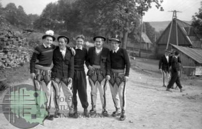 fotografia przedstawia kościół przy Krupówkach w Zakopanem, przed którym stoją dwie kobiety [prawdopodobnie chodzi o obecną parafię Najświętszej Rodziny]