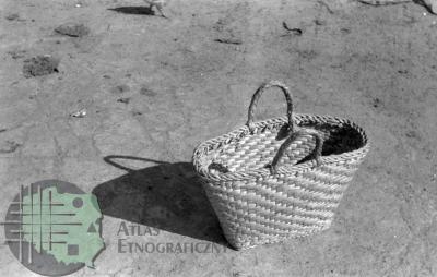 fotografia przedstawia torbę targową. Uwaga:- zdjęcie powstało w trakcie miesięcznych badań archeologiczno-etnologicznych, w których uczestniczyli również studenci etnologii (w tym Zygmunt Kłodnicki) prowadzeni pod kierunkiem naukowym Adolfa Nasza -