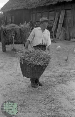 Mężczyzna niosący kosz ze słomą / Kolekcja fotografii Zygmunta Kłodnickiego - Krajkowo, woj. wielkopolskie