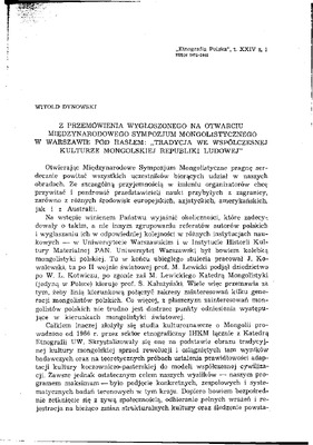 Z przemówienia wygłoszonego na otwarcie Międzynarodowego Sympozjum Mongolistycznego w Warszawie pod hasłem "Tradycja we współczesnej kulturze Mongolskiej Republiki Ludowej" / ETNOGRAFIA POLSKA 1980 t.24 z.1