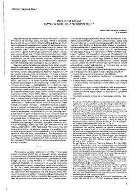 Interpretacja, czyli o sztuce antropologii / Polska Sztuka Ludowa - Konteksty t.44 z.1