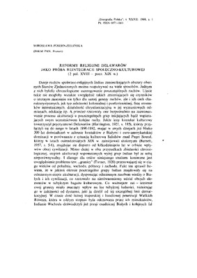 Reformy religijne Delawarów jako próba reintegracji społeczno-kulturowej (2 poł. XVIII - pocz. XIX w.) / ETNOGRAFIA POLSKA 1988 t.32 z.1