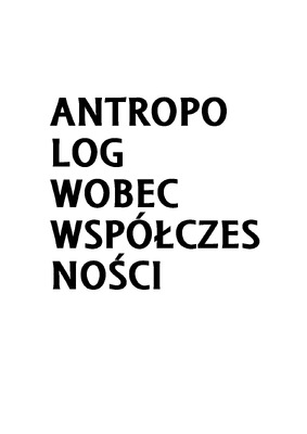 Antropolog wobec współczesności pod red. Anny Malewskiej-Szałygin i Magdaleny Radkowskei-Walkowicz s.1-6