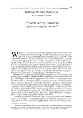 Wirtualne serwisy randkowe - fenomen współczesności? / Homo interneticus: etnograficzne wędrówki w głąb sieci