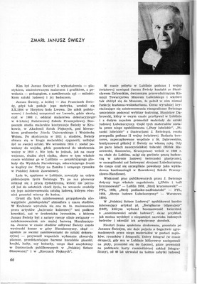 Zmarł Janusz Świeży/ Polska Sztuka Ludowa - Konteksty 1963 t.17 z.1