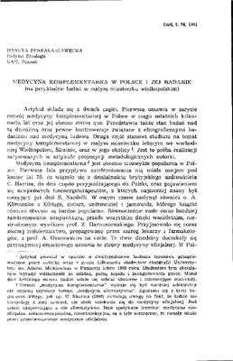 Medycyna komplementarna w Polsce i jej badanie / LUD 1991 t.74
