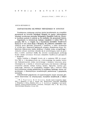 Kształtowanie się rynku pieniężnego w Mongolii / ETNOGRAFIA POLSKA 1974 t.18 z.1